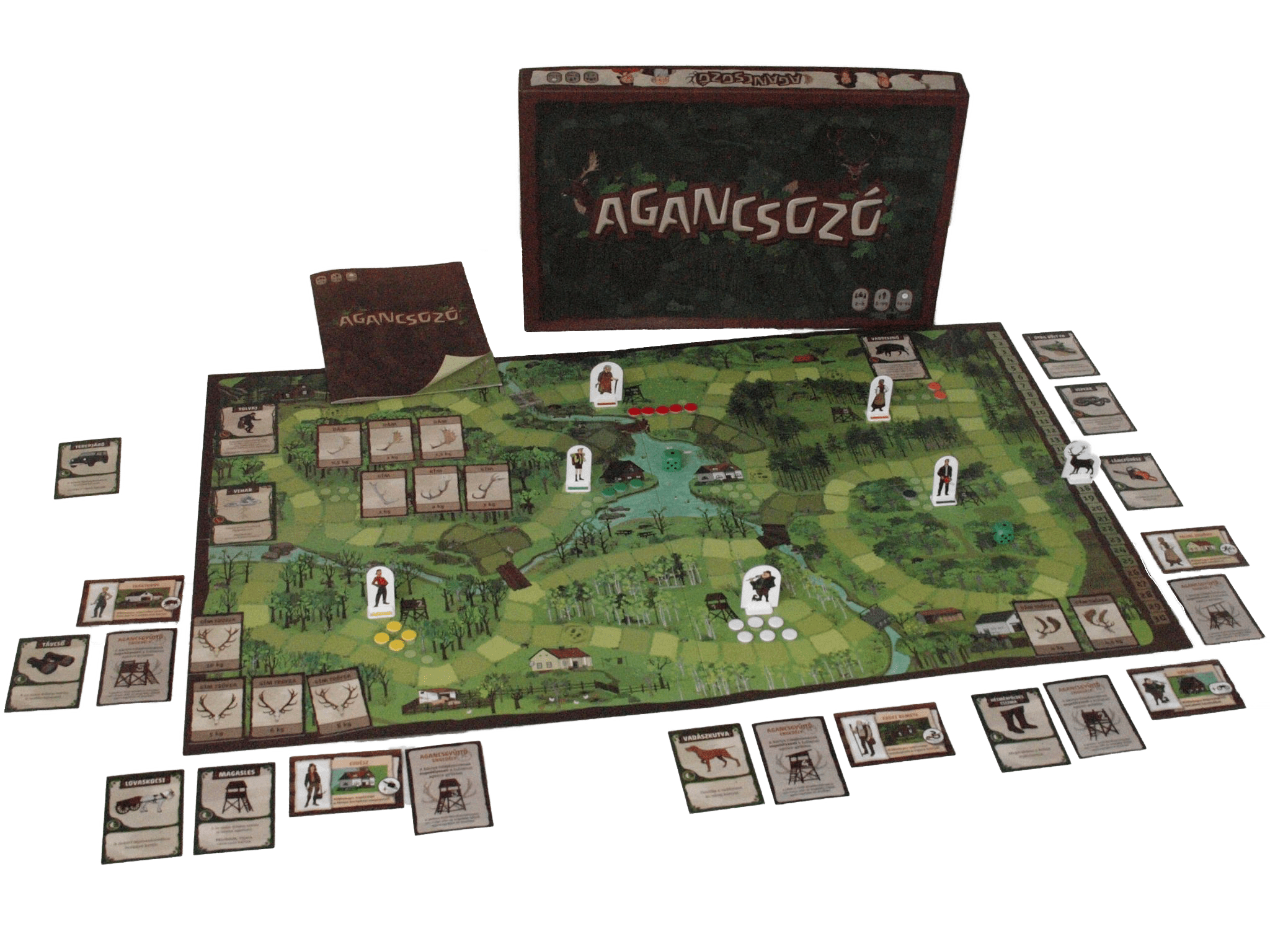 Az Agancsozó egy olyan izgalmas társasjáték, ahol a gím-, és dámszarvasok által lehullatott agancsokat kell összegyűjteni a játék során.